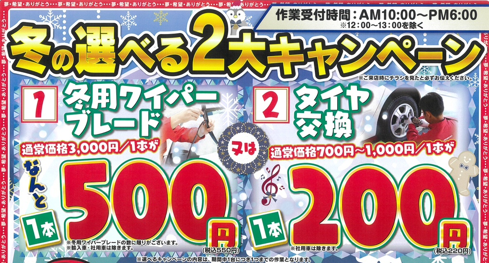 特に冬用ワイパーは在庫に限りがあるため、期間初めのご来店・ご予約が絶対におすすめです。