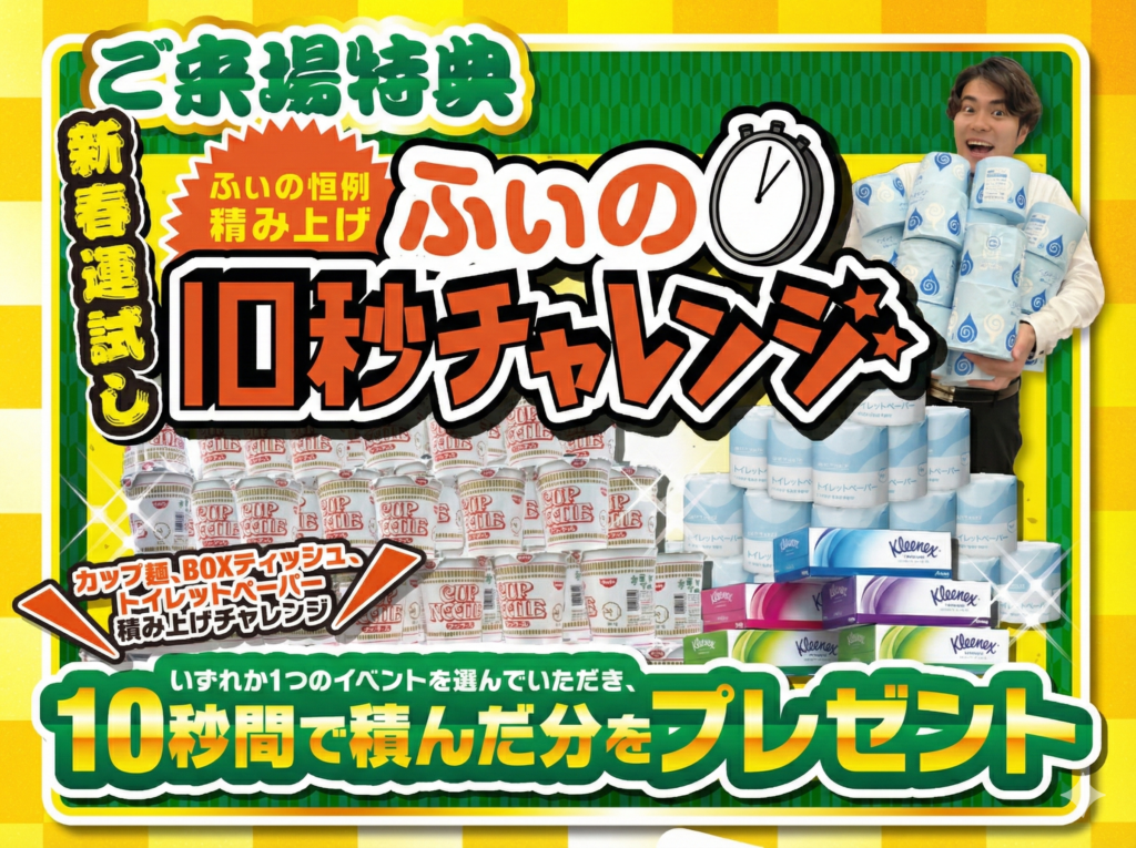 「ふぃの」の初売りは、車が安いだけじゃありません。ご来場いただくだけで楽しめるイベントや、ご成約での豪華プレゼントをご用意しました!