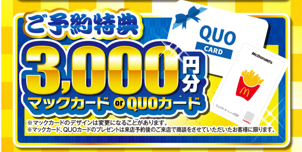 3,000円分のQUOカードまたはマックカードをプレゼント!