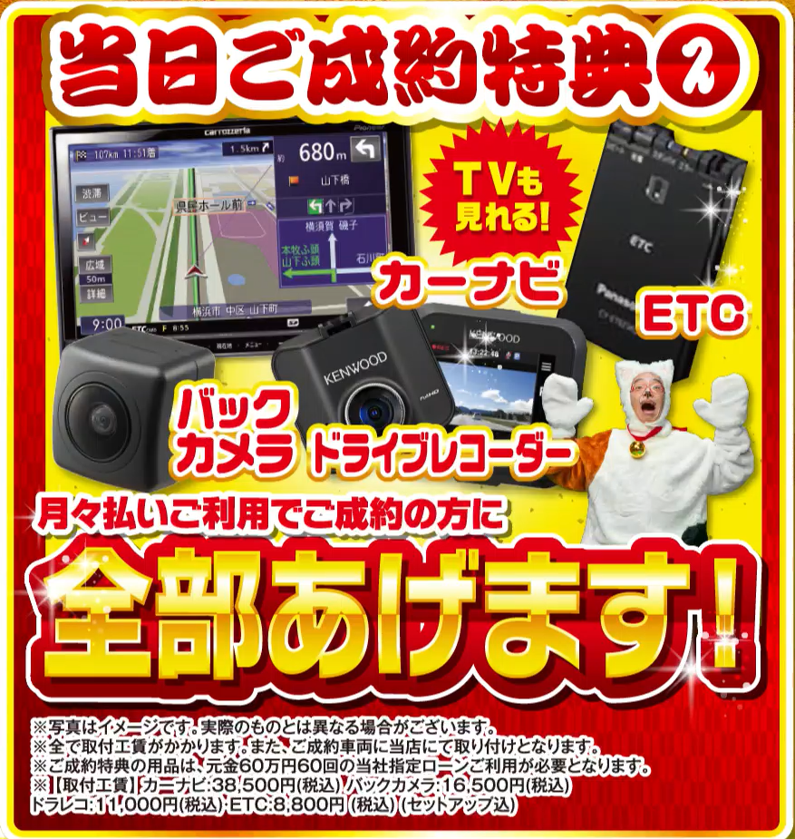 これが最大の目玉!お車をご成約いただいた方へのビッグなプレゼントです。