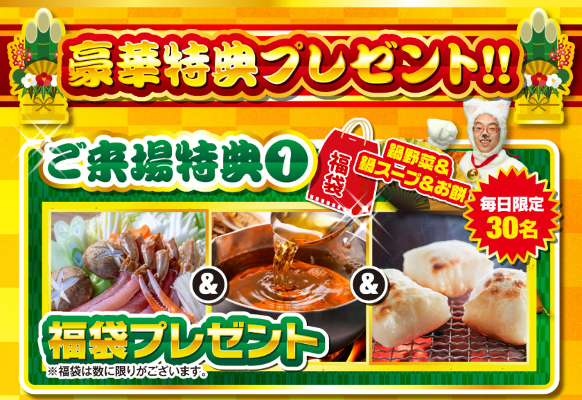 ①福袋プレゼント(毎日先着30名様・4日間実施)