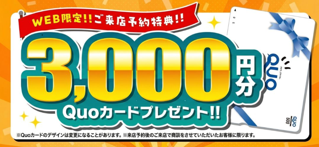 なんと、ご予約特典として「QUOカード」3,000円分をプレゼント!