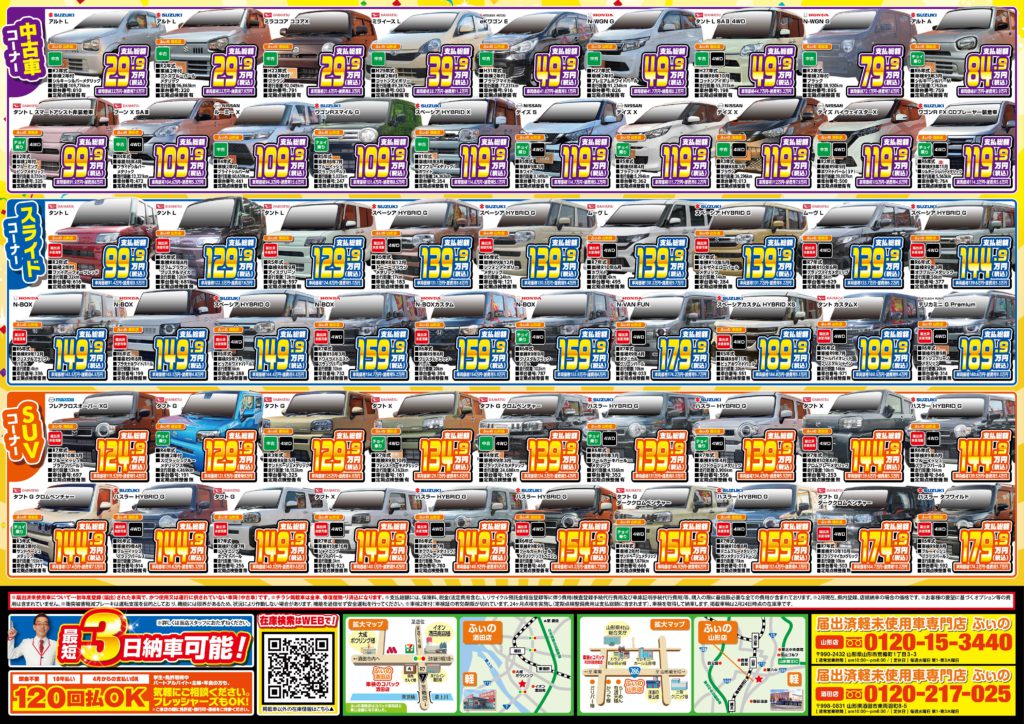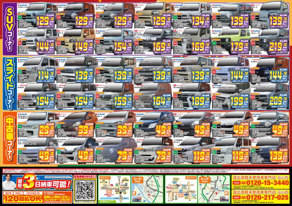 山形でトップクラスのオールメーカー 600台の在庫数!!