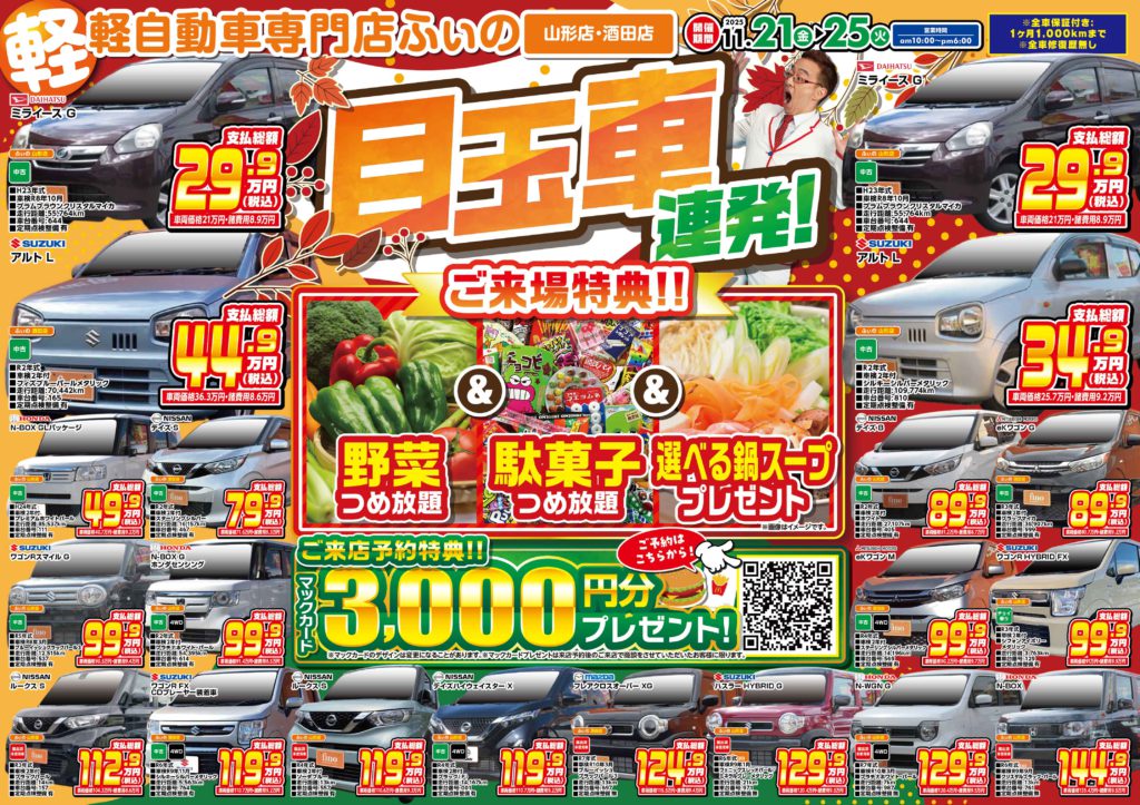 山形でトップクラスのオールメーカー 600台の在庫数!!