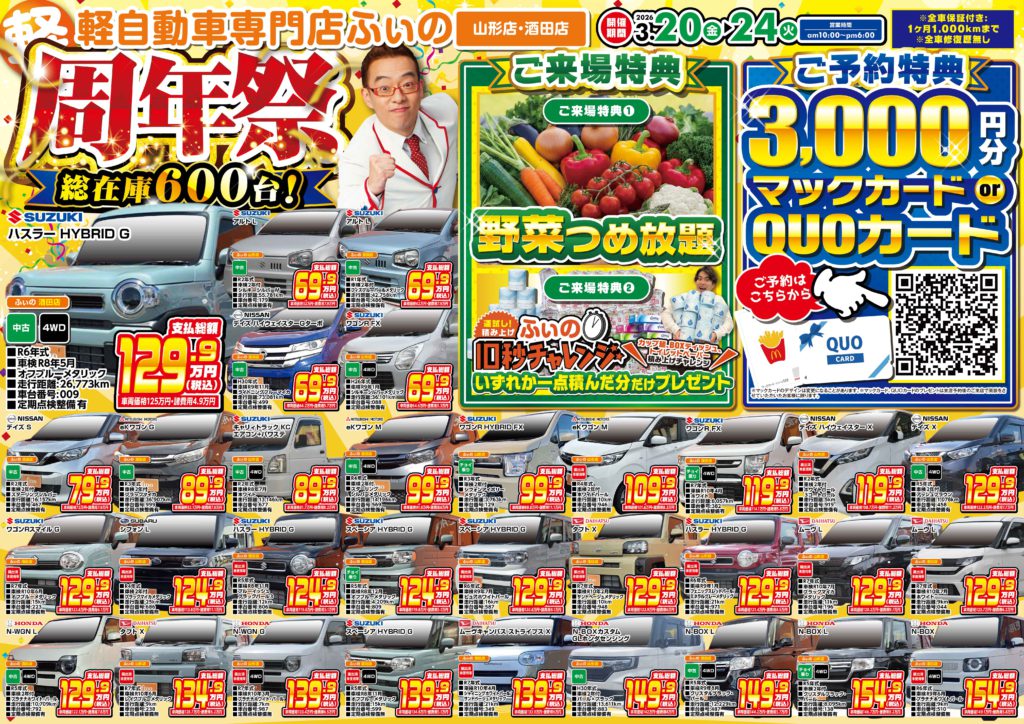 山形でトップクラスのオールメーカー 600台の在庫数!!