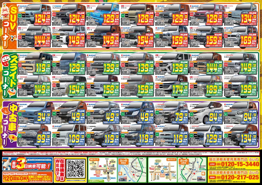 山形でトップクラスのオールメーカー 600台の在庫数!!