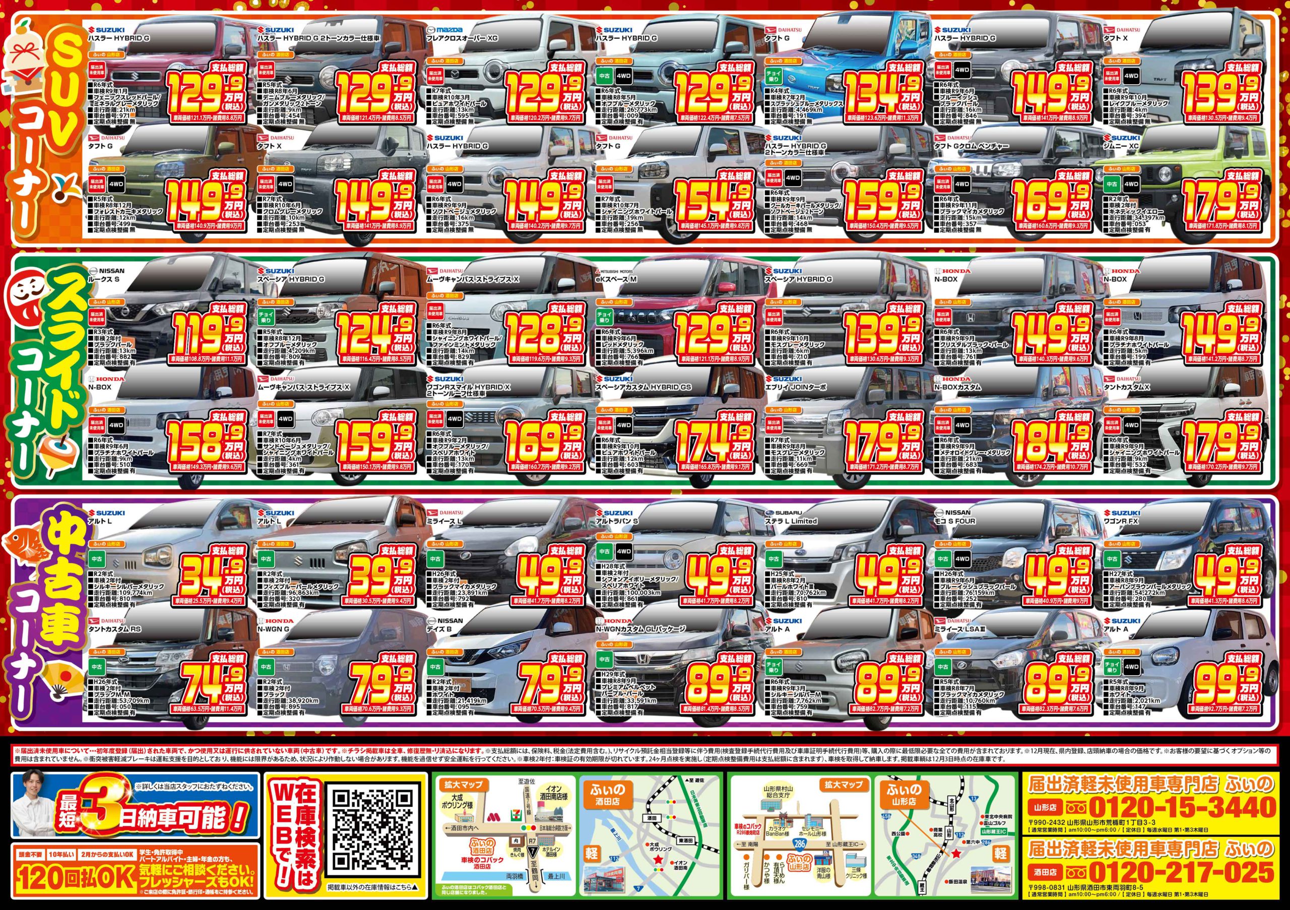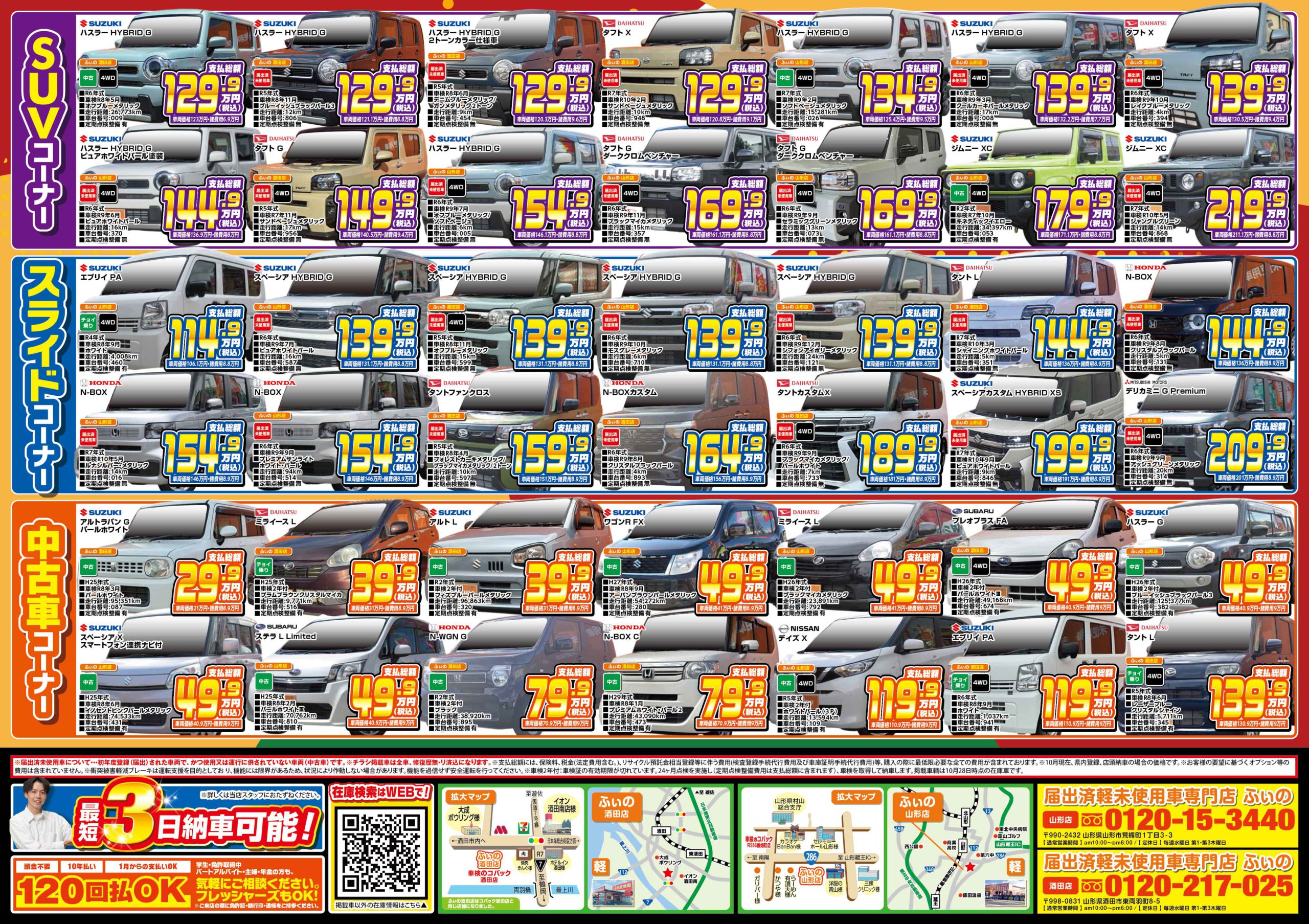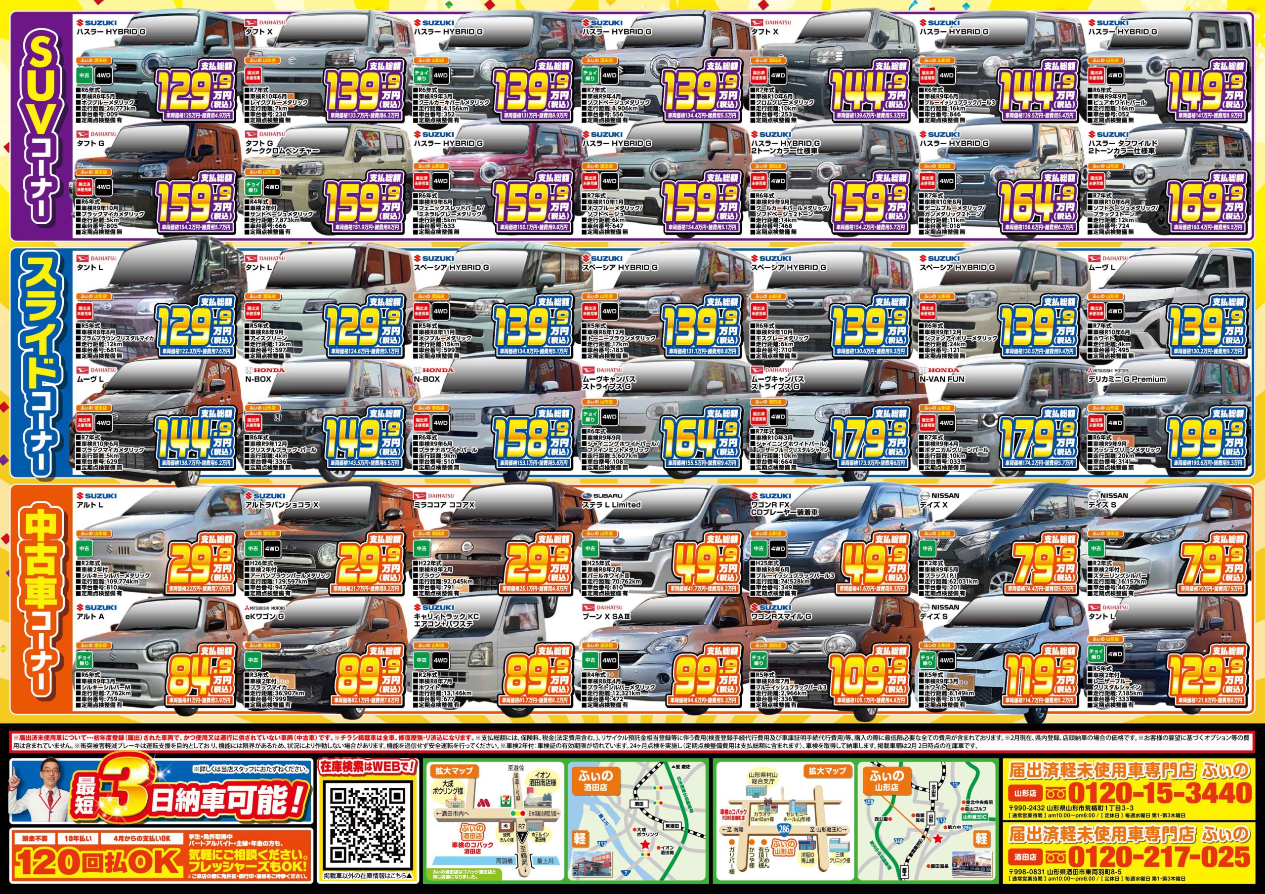 山形・酒田で軽自動車の届出済未使用車をお探しならfino(ふぃの)まで!