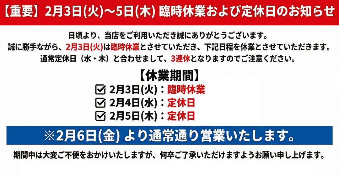 定休日: 毎週水曜日、第1 第3 木曜日