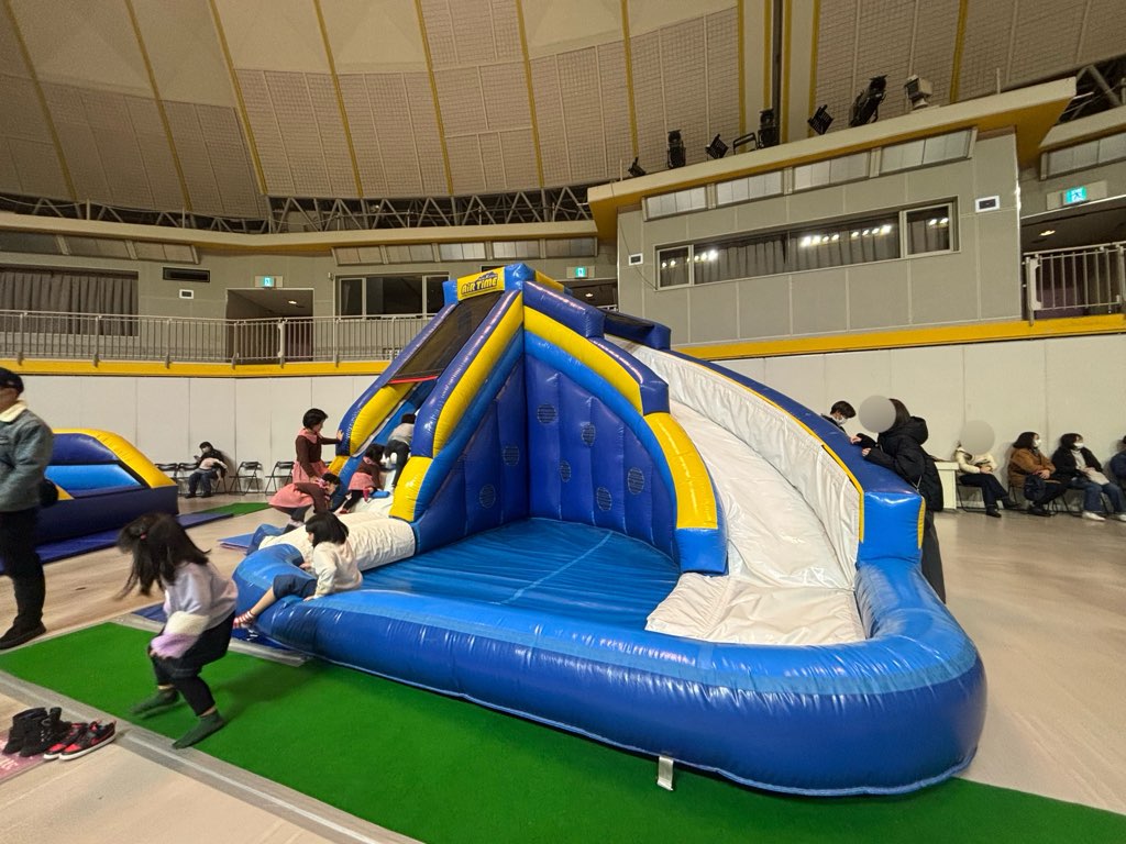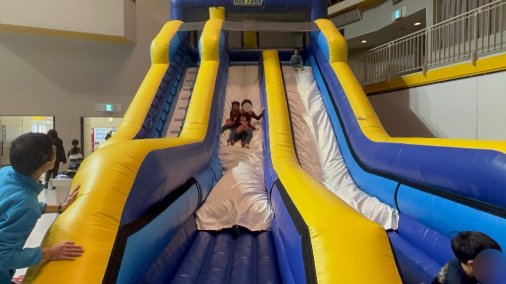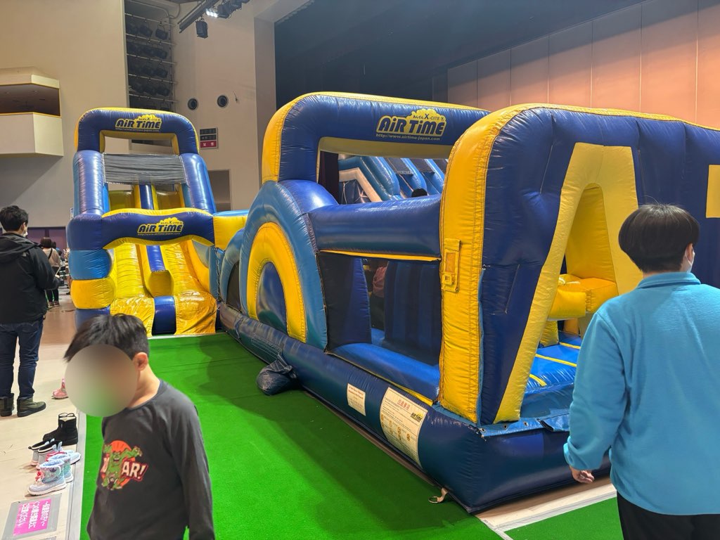 高クッション性のエアー遊具と、会場内に配置された見守りスタッフにより、安全面にも配慮されています。保護者が少し距離を取って見守れる環境が整っているため、子どもはのびのびと遊ぶことができますよ。