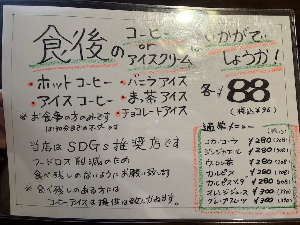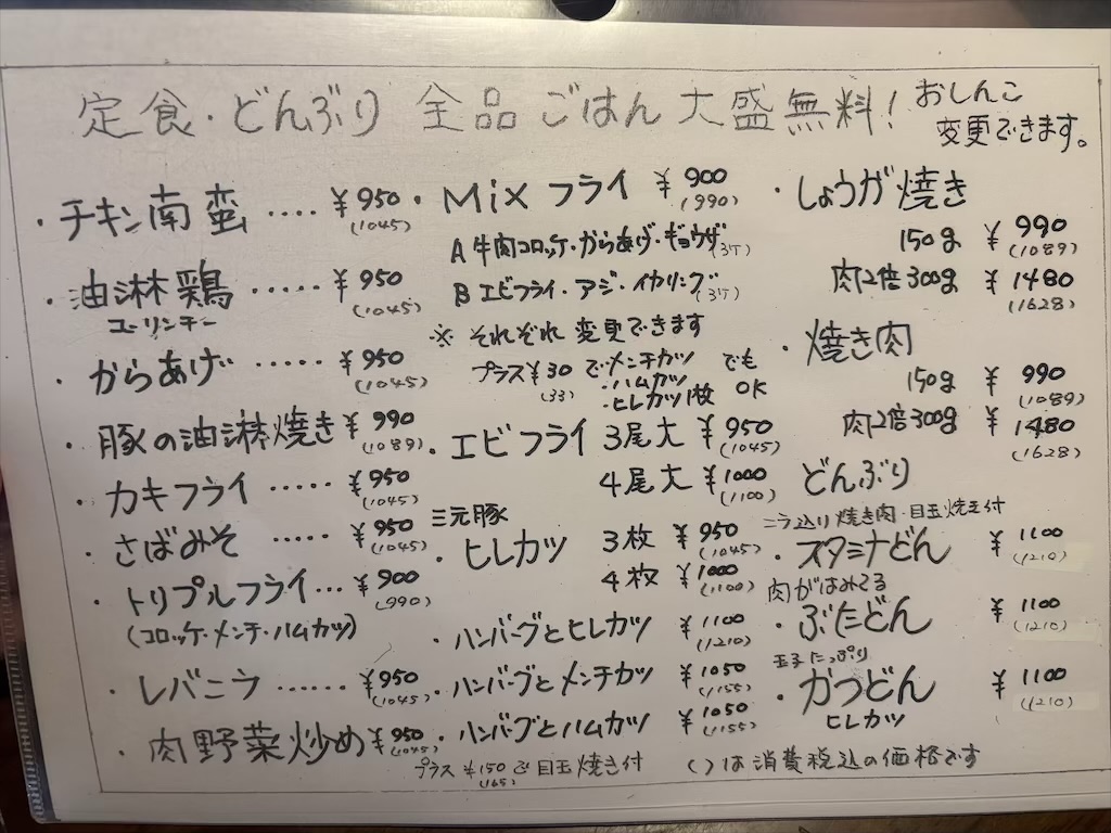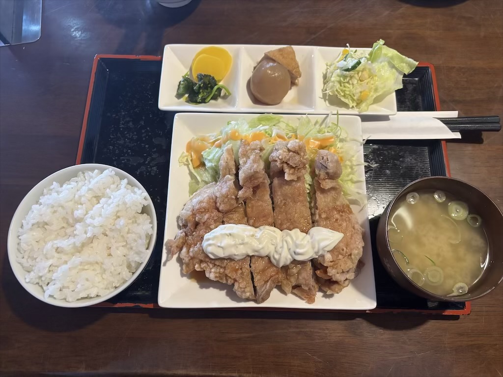 さらに、チキン南蛮定食や唐揚げ定食などの定食系メニューも充実しており、ランチタイムは「定食屋さん」として利用するお客さんも多い印象です。