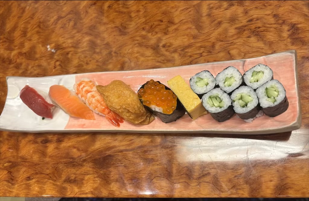 そして今回は「お子さま寿司」も注文。見た目が可愛らしく、子どもが食べやすい内容になっており、家族での外食にもぴったりです。老舗でありながら、子ども連れにもやさしい心配りが感じられました。