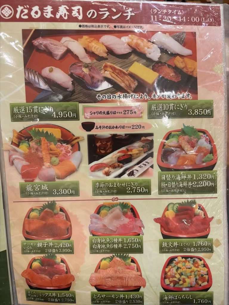 だるま寿司は、長い歴史を持ちながらも、今の時代に合わせた柔軟なサービスを取り入れています。ランチ利用から宴会、家族の節目の食事まで、さまざまな場面で選ばれている理由がよく分かりました。
