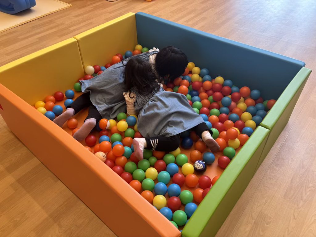 大型遊具というよりは、小さな子どもが安心して遊べる工夫がされた空間という印象で、ハイハイ期の赤ちゃんから元気に走り回る子どもまで、それぞれの発達に合わせて楽しめます。