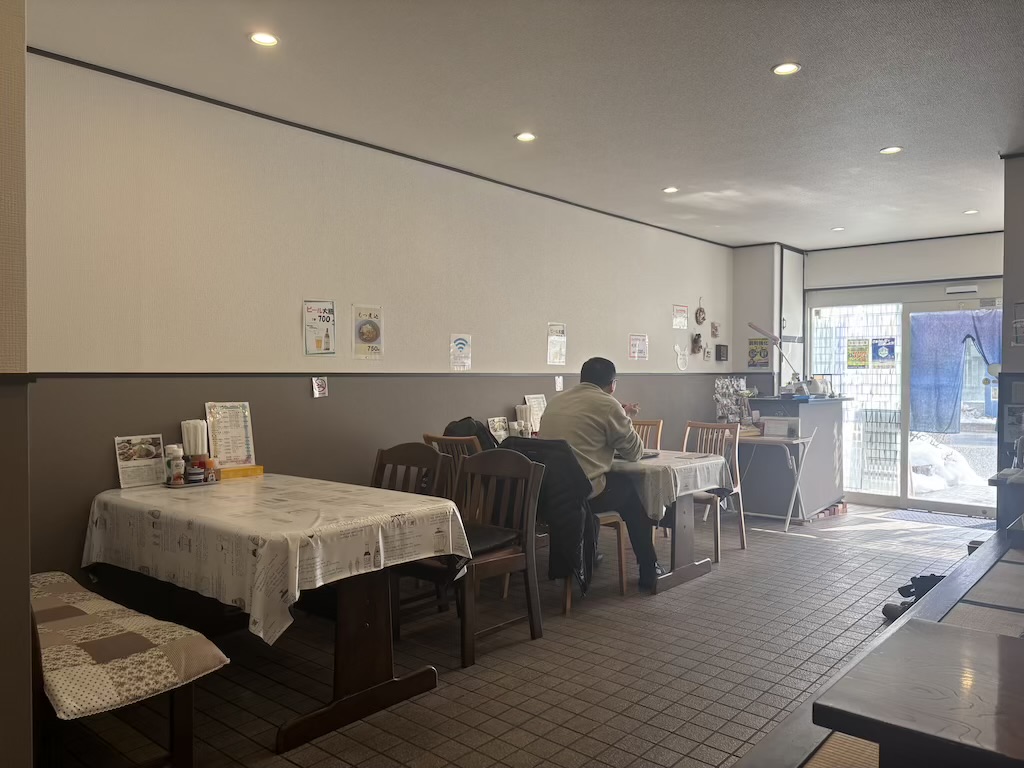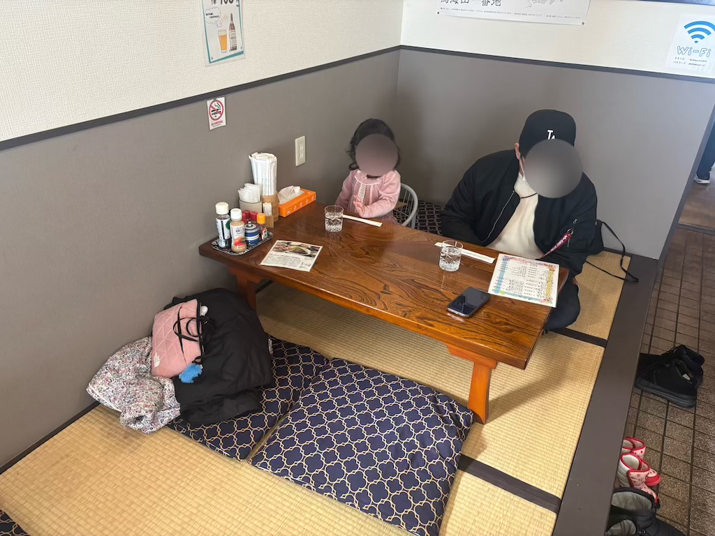 テーブル席と小上がり席がバランスよく配置されていて、一人でも家族でも利用しやすい空間になっています。